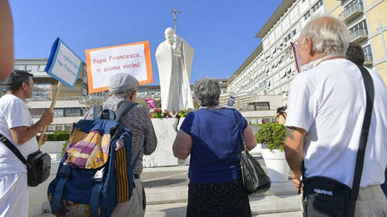 Ông Jorge, 63 tuổi, bị bệnh tiểu đường từ 6 năm nay, đã được cộng đoàn thánh Egidio đón tiếp và nhờ đó ông có thể chữa trị bệnh. Ông mang theo tấm bảng giấy với dòng chữ “Đức Giáo hoàng Phanxicô, chúng con gần với cha”. Sau khi đọc kinh Lạy Cha trong phút cầu nguyện do cha Francesco Tedeschi, cha phó giáo xứ Đức Mẹ ở khu vực Trastevere hướng dẫn, ông nói: “Tôi cầu chúc mọi sự sớm tốt hơn với Đức Thánh Cha”.