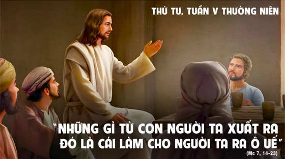 Người lại phán: “Những gì ở trong người ta mà ra, đó là cái làm cho người ta ô uế. Vì từ bên trong, từ tâm trí người ta xuất phát những tư tưởng xấu, ngoại tình, dâm ô, giết người, trộm cắp, tham lam, độc ác, xảo trá, lăng loàn, ganh tị, vu khống, kiêu căng, ngông cuồng. Tất cả những sự xấu đó đều ở trong mà ra, và làm cho ngươì ta ô uế”.