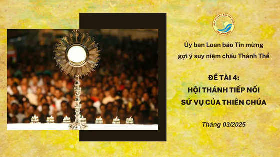 Nhằm khơi dậy ý thức truyền giáo nơi các cộng đoàn tín hữu, Ủy ban Loan báo Tin mừng trong “Kế hoạch thực hiện sống Năm thánh 2025 – Cùng nhau Loan báo Tin mừng” đề nghị mỗi giáo phận chọn một ngày theo chu kỳ tuần/tháng/năm để chầu Thánh Thể cầu nguyện cho việc truyền giáo. Ủy ban Loan báo Tin mừng sẽ có bài gợi ý suy niệm chầu Thánh Thể mỗi tháng. Sau đây là bài gợi ý suy niệm tháng 03/2025.ỦY BAN LOAN BÁO TIN MỪNG – HỘI ĐỒNG GIÁM MỤC VIỆT NAM