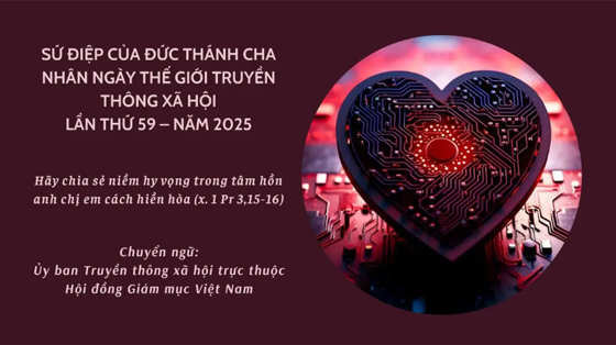 Ngày 24/01/2025, ngày lễ kính nhớ thánh Phanxicô đệ Salê, bổn mạng các nhà báo, Đức Thánh Cha Phanxicô đã công bố Sứ điệp nhân Ngày Thế giới về Truyền thông Xã hội lần thứ 59, có chủ đề: “Hãy chia sẻ niềm hy vọng trong tâm hồn anh chị em cách hiền hòa” (x. 1 Pr 3,15-16). Sau đây là bản dịch Việt ngữ của Ủy ban Truyền thông Xã hội trực thuộc Hội đồng Giám mục Việt Nam:SỨ ĐIỆP CỦA ĐỨC THÁNH CHA