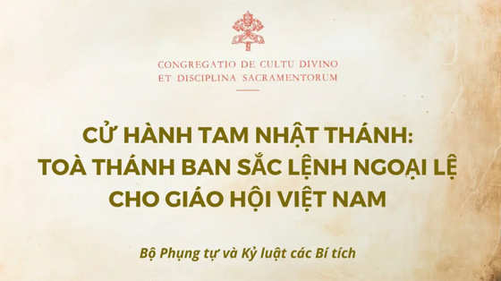 Hôm qua, Văn phòng Đại diện Toà Thánh thường trú tại Việt Nam đã chuyển đến Hội đồng Giám mục Việt Nam thư của Bộ Phụng tự và Kỷ luật các Bí tích kèm sắc lệnh, theo cách thức ngoại lệ, cho phép “cử hành nhiều lần Nghi thức Tưởng niệm Cuộc Thương Khó của Chúa và Canh thức Vượt Qua” tại cùng một nơi.Được biết, theo hướng dẫn của Sách lễ Rôma thì tại mỗi nơi, (nhà thờ, nhà nguyện, giáo điểm), chỉ được cử hành một Thánh lễ Vọng Phục Sinh mà thôi (x. Sách lễ Rôma [2002], “Đêm Vọng Phục Sinh”, số 2). Vì thế, khi nhu cầu mục vụ của các giáo xứ có đông tín hữu nhưng bị giới hạn cơ sở vật chất cần phải tổ chức hai hoặc nhiều lần các cử hành Nghi thức Tưởng niệm Cuộc Thương Khó của Chúa và Thánh lễ Vọng Phục Sinh thì giám mục giáo phận (Đấng Bản quyền) có thể cho áp dụng ngoại lệ như sắc lệnh đã cho phép. Uỷ ban Phụng tự hân hoan phổ biến sắc lệnh này.