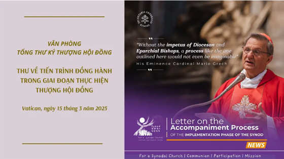 Văn phòng Tổng Thư ký Thượng Hội đồng Giám mục đã gửi đến tất cả các Giám mục thuộc Giáo hội Công giáo Rôma cũng như Giáo hội Công giáo Đông phương, và qua các ngài, đến toàn thể “Dân thánh của Thiên Chúa” được ủy thác cho các ngài chăm sóc, một Lá thư về tiến trình đồng hành trong giai đoạn thực hiện Thượng Hội đồng “Hướng tới một Giáo hội hiệp hành: hiệp thông, tham gia, sứ vụ”.Tiến trình đồng hành và lượng giá trong giai đoạn thực hiện này, do Văn phòng Tổng Thư ký Thượng Hội đồng Giám mục điều phối, đã được Đức Thánh Cha Phanxicô phê chuẩn. Ngài đã yêu cầu phổ biến nội dung này đến các Giáo hội địa phương và các nhóm Giáo hội.