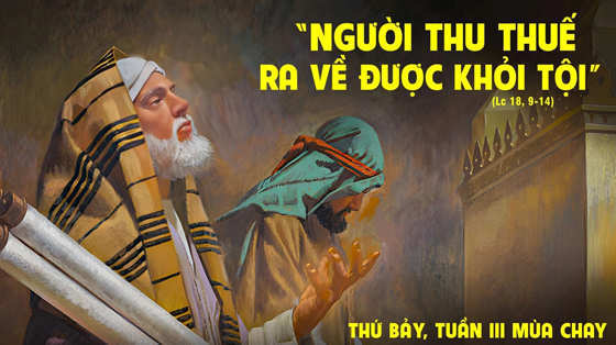Khi ấy, Chúa Giêsu nói dụ ngôn sau đây với những người hay tự hào mình là người công chính và hay khinh bỉ kẻ khác: “Có hai người lên đền thờ cầu nguyện, một người biệt phái, một người thu thuế. Người biệt phái đứng thẳng, cầu nguyện rằng: “Lạy Chúa, tôi cảm tạ Chúa vì tôi không như các người khác: tham lam, bất công, ngoại tình, hay là như tên thu thuế kia; tôi ăn chay mỗi tuần hai lần, và dâng một phần mười tất cả các hoa lợi của tôi”. Người thu thuế đứng xa xa, không dám ngước mắt lên trời, đấm ngực mà nguyện rằng: “Lạy Chúa, xin thương xót con là kẻ có tội”. Ta bảo các ngươi: người này ra về được khỏi tội, còn người kia thì không. Vì tất cả những ai tự nâng mình lên, sẽ bị hạ xuống; và ai hạ mình xuống, sẽ được nâng lên”.