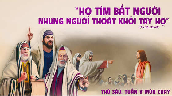 Khi ấy, người Do-thái lượm đá để ném Chúa Giêsu. Người lên tiếng hỏi rằng: “Ta đã cho các ngươi thấy nhiều việc tốt lành bởi Cha Ta. Vậy vì việc nào mà các ngươi muốn ném đá Ta?” Người Do-thái trả lời: “Chúng tôi muốn ném đá ông không phải vì việc lành, nhưng vì một lời lộng ngôn, bởi vì ông chỉ là người mà lại tự cho mình là Thiên Chúa”. Chúa Giêsu đáp lại: “Nào trong sách luật của các ngươi không có chép câu này: “Ta đã nói: các ngươi là thần”? Vậy nếu sách luật gọi những kẻ được nghe lời Chúa là thần, mà Kinh Thánh không thể huỷ diệt được, thì tại sao các ngươi nói với Ðấng đã được Chúa Cha thánh hoá và sai đến trong trần gian rằng “Ông nói lộng ngôn”, vì Ta đã nói Ta là Con Thiên Chúa? Nếu Ta không làm những việc của Cha Ta, thì các ngươi đừng tin Ta. Nhưng nếu Ta làm những việc đó, thì dầu các ngươi không muốn tin Ta, cũng hãy tin vào các việc đó, để các ngươi biết và tin rằng: Cha ở trong Ta, và Ta ở trong Cha”. Bởi đó họ tìm cách bắt Người, nhưng Người thoát khỏi tay họ. Người lại qua bên kia sông Giođan, nơi trước kia Gioan đã làm phép rửa. Và Người ở lại đó. Có nhiều kẻ đến cùng Người. Họ nói: “Gioan đã không làm một phép lạ nào. Nhưng mọi điều Gioan nói về người này đều đúng cả”. Và có nhiều kẻ tin Người.
