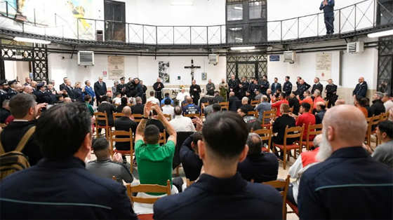 Các tù nhân, từ 20 đến 65 tuổi, ngồi thành năm hàng chờ đợi Đức Thánh Cha. Họ là đến từ Ý và nhiều quốc gia khác, thậm chí cả các châu lục xa xôi.