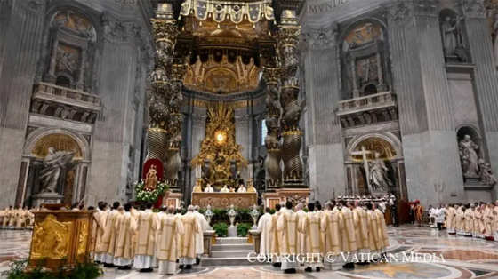 Anh chị em tín hữu, dân tộc của hy vọng, hôm nay hãy cầu nguyện cho niềm vui của các linh mục. Ước gì sự giải thoát mà Kinh Thánh hứa và các Bí tích nuôi dưỡng đến với anh chị em. Nhiều nỗi sợ hãi cư ngụ trong chúng ta và những bất công khủng khiếp bao quanh chúng ta, nhưng một thế giới mới đã xuất hiện. Thiên Chúa đã yêu thế gian đến nỗi ban Con Một Người cho chúng ta, là Chúa Giêsu. Người xức dầu chữa lành những vết thương của chúng ta và lau khô những giọt nước mắt của chúng ta. “Kìa, Người ngự đến giữa đám mây” (Kh 1,7). Người làm chủ vương quốc và vinh quang đến muôn thuở muôn đời. Amen.
