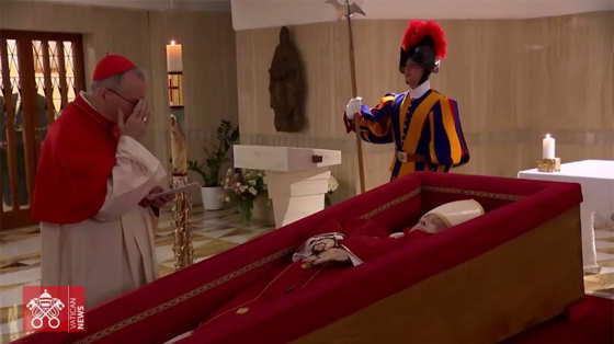 Vào lúc 9 giờ sáng thứ Tư, ngày 23/4/2025, quan tài với thi hài của Đức Giáo hoàng Phanxicô sẽ được đưa từ Nhà nguyện Domus Sanctæ Marthæ (Nhà Thánh Marta) đến Đền thờ Thánh Phêrô, theo quy định trong Nghi lễ an táng các Giáo hoàng (các số 41-65)”.