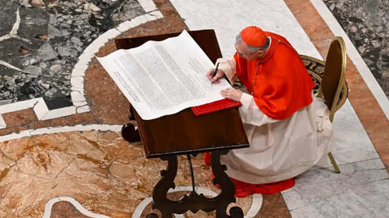 Cùng với chúng ta, một người hành hương của hy vọng, người dẫn đường và bạn đồng hành trên hành trình hướng đến mục tiêu lớn lao mà chúng ta được kêu gọi, đó là Thiên đàng, vào ngày 21 tháng 4 của Năm Thánh 2025, lúc 7:35 sáng, trong khi ánh sáng của Lễ Phục sinh chiếu sáng ngày thứ hai của Tuần Bát Nhật, Thứ Hai Thiên thần, Mục tử yêu dấu của Giáo hội, Đức Phanxicô, đã từ giã thế giới này đến với Chúa Cha. Toàn thể cộng đồng Kitô giáo, đặc biệt là người nghèo, đã ngợi khen Thiên Chúa vì món quà phục vụ của ngài được thực hiện với lòng dũng cảm và lòng trung thành với Phúc Âm và với Hiền thê huyền nhiệm của Chúa Kitô.