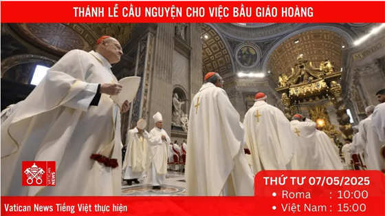 Vatican News Tiếng Việt truyền hình trực tiếp Thánh lễ cầu nguyện cho việc bầu Giáo hoàng vào lúc 10g00 giờ Rôma (15g00 giờ Việt Nam) thứ Tư ngày 07/5/2025.