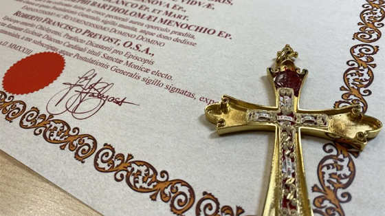 Vào ngày được bầu chọn, Đức Thánh Cha Lêô XIV đã đeo một Thánh Giá đeo ngực có thánh tích của các vị thánh có liên quan đến dòng Augustinô: thánh tích của Thánh Augustinô và Thánh Monica.Thánh Giá đeo trước ngực mà Đức Giáo hoàng Lêô XIV đeo vào ngày đắc cử Giáo hoàng, ngày 8/5/2025, mang theo một thông điệp mạnh mẽ về sự thánh thiện của vị Giám mục. Bên trong Thánh giá là những mảnh xương của các vị thánh có mối liên hệ sâu sắc với truyền thống Augustinô – những chứng nhân của đức tin có cuộc sống phản ánh lòng trung thành, sự cải cách, phục vụ và tử đạo.