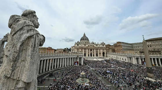Sau đó, hai phó tế mang dây Pallium, Nhẫn Ngư Phủ và Sách Tin Mừng tiến về Bàn Thờ chính đặt tại quảng trường Thánh Phêrô.