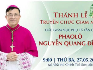 Thánh lễ truyền chức Giám mục cho Đức cha Phụ tá tân cử Phaolô Nguyễn Quang Đĩnh sẽ được cử hành vào lúc 09g00 ngày […]
