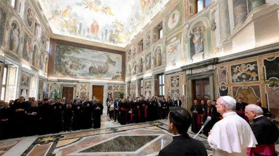 Lịch sử của các Giáo hội Công Giáo Đông Phương thường mang dấu ấn của đau khổ và bạo lực. Thật đáng buồn, đã có những trường hợp bị áp bức và hiểu lầm ngay trong chính cộng đồng Công giáo, đôi khi không thừa nhận và đánh giá cao giá trị của các truyền thống ngoài truyền thống của Tây phương. Tuy nhiên, ngày nay, xung đột bạo lực dường như đang hoành hành ở Kitô giáo Đông phương với mức độ độc ác chưa từng thấy. Chính Hội nghị thường niên của anh chị em cũng đã bị ảnh hưởng bởi sự vắng mặt của những người đáng lẽ đã đến từ Đất thánh, nhưng lại không thể thực hiện được hành trình. Con tim chúng ta rỉ máu khi nghĩ đến Ukraine, đến tình hình bi thảm và vô nhân đạo tại Gaza, và toàn vùng Trung Đông đang bị tàn phá bởi chiến tranh lan rộng. Tất cả chúng ta, với lòng nhân của mình, đều được mời gọi xét lại căn nguyên của các cuộc xung đột này, xác định những nguyên nhân thật và cố gắng giải quyết chúng. Nhưng cũng phải loại bỏ những nguyên nhân ngụy tạo, là sản phẩm của sự thao túng cảm xúc và khoa trương, và cố gắng bằng mọi cách để đưa chúng ra ánh sáng. Mọi người không được chết vì tin giả.