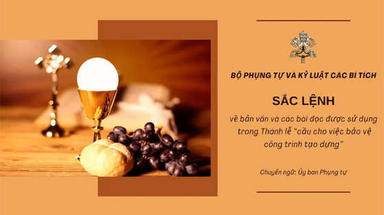 Ngày 03 tháng 7 năm 2025, Bộ Phụng tự và Kỷ luật các Bí tích đã phổ biến sắc lệnh (số 283/24) về bản văn và các bài đọc dành cho Thánh lễ “cầu cho việc bảo vệ công trình tạo dựng”. Ủy ban Phụng tự Hội đồng Giám mục Việt Nam hân hoan giới thiệu sắc lệnh này, bản dịch bản văn Thánh lễ và các bài đọc sẽ được phổ biến sau.BỘ PHỤNG TỰ VÀ KỶ LUẬT CÁC BÍ TÍCH
