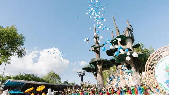 Chùm bong bóng và phướn mang tên chủ đề hành hương: “Đức Maria – Mẹ của niềm hy vọng” tung bay trên bầu trời La Vang giữa tiếng reo hò của muôn người con thảo hiếu chúc tụng Mẹ, cùng ngước lên trời hướng về Mẹ và Con Chí thánh của Mẹ, nơi chúng con hy vọng sẽ đến vào ngày Cánh chung.
