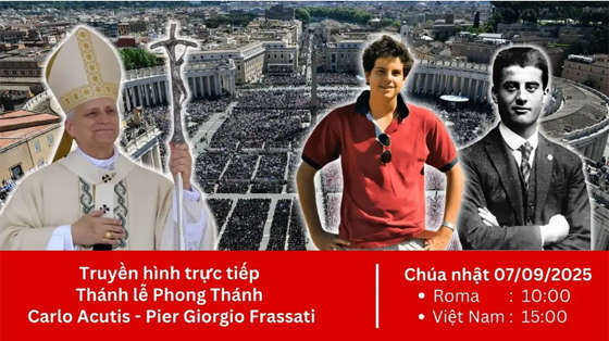 Chúa nhật ngày 07 tháng 9 năm 2025, Đức Thánh cha Lêô XIV chủ sự thánh lễ phong thánh cho hai chân phước trẻ: Pier Giorgio Frassati và Carlo Acutis tại quảng trường Thánh Phêrô. Vatican News Tiếng Việt tường thuật trực tiếp thánh lễ. Múi giờ: Roma: 10:00; Việt Nam 15:00.