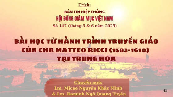 Chuyến hành trình truyền giáo của Mattheo Ricci (1583-1610) đến Trung Quốc được coi là một bước đột phá lớn trong mối quan hệ Đông-Tây. Theo lời Đức Giáo hoàng Gioan Phaolô II, Ricci “đã thành công trong việc đạt được thông qua sự cam kết kiên quyết, khiêm nhường và tôn trọng, một kiến thức sâu rộng và hiểu biết về nền văn hóa cổ điển Trung Quốc để biến ông thành một ‘cầu nối’ thực sự giữa nền văn minh châu Âu và Trung Quốc”BÀI HỌC TỪ HÀNH TRÌNH TRUYỀN GIÁO CỦA CHA MATTEO RICCI (1583-1610) TẠI TRUNG HOA