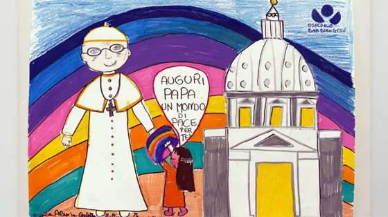 Với những bức vẽ đầy màu sắc được tạo ra trong phòng vui chơi của Bệnh viện thuộc Tòa Thánh, các bệnh nhân nhỏ đang diễn tả ước mong mà Đức Thánh Cha đã bày tỏ kể từ ngày ngài được bầu chọn: hòa bình cho tất cả mọi người và cho toàn thế giới.