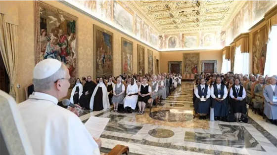 Đức Thánh Cha cũng khẳng định: trong một thế giới có xu hướng duy vật, chứng tá của các Hội dòng cho thấy tất cả những công việc bác ái và tông đồ chỉ có thể thực hiện nhờ sức mạnh đến từ Thiên Chúa. Trích lại lời Thánh Augustinô và Thánh Gioan Phaolô II, ngài mời gọi các nữ tu sống khiêm nhường, kết hợp với Đức Kitô, vừa chiêm niệm vừa dấn thân phục vụ, can đảm bước theo con đường thập giá.